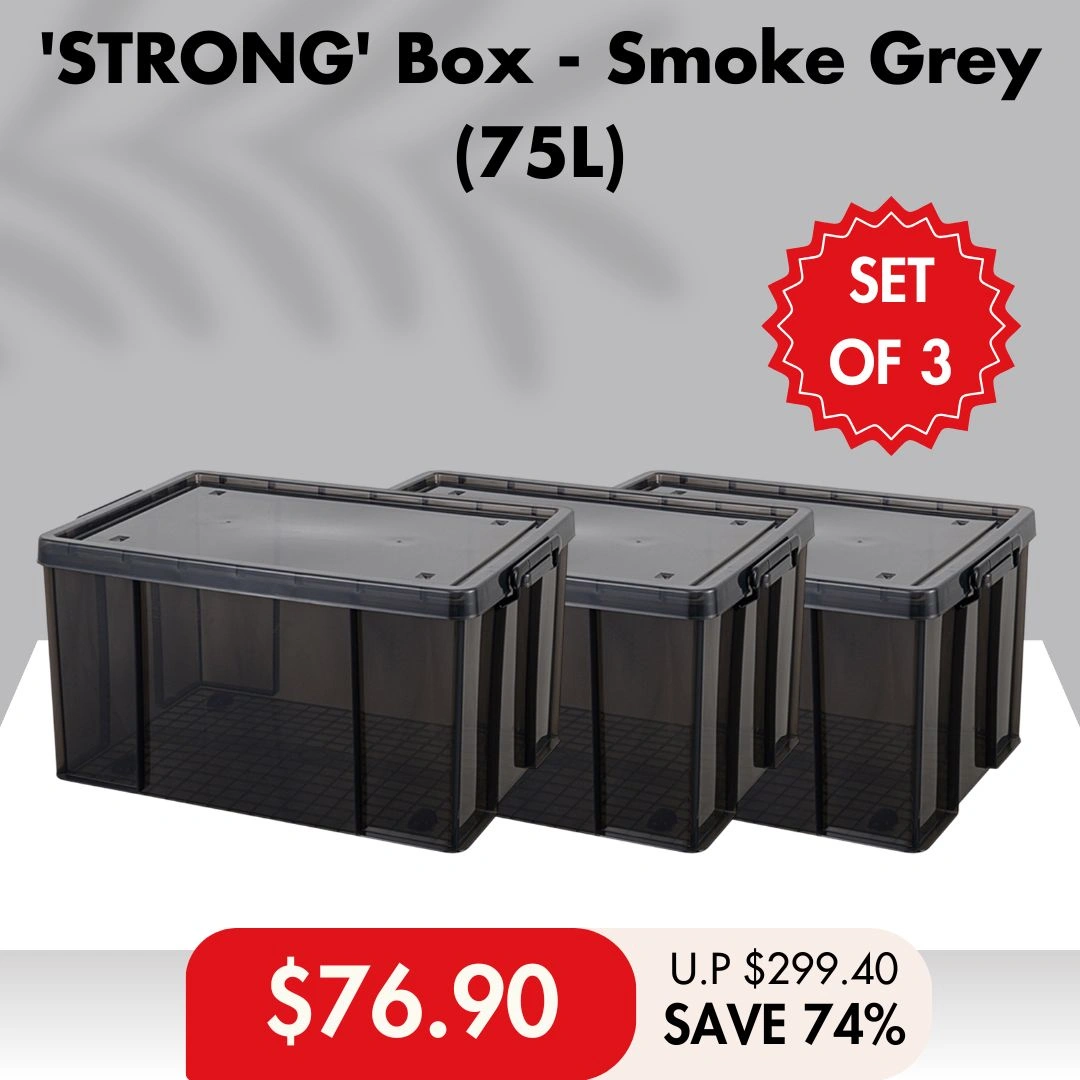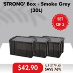A Symphony in Smoke Grey: Dive into the meticulously crafted world of HOUZE ‘STRONG’ Storage Box Collection with its pièce de résistance. the 30L/44L/75L/100L ‘STRONG’ Box. donning a sophisticated Smoke Grey attire.