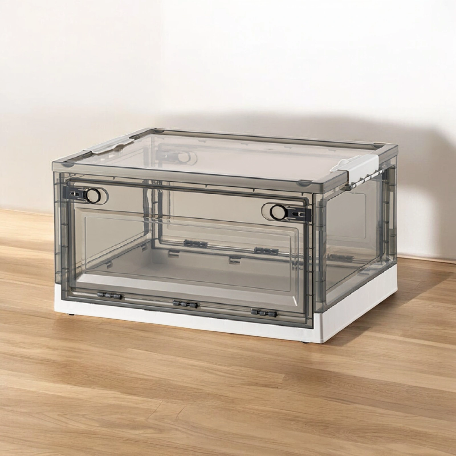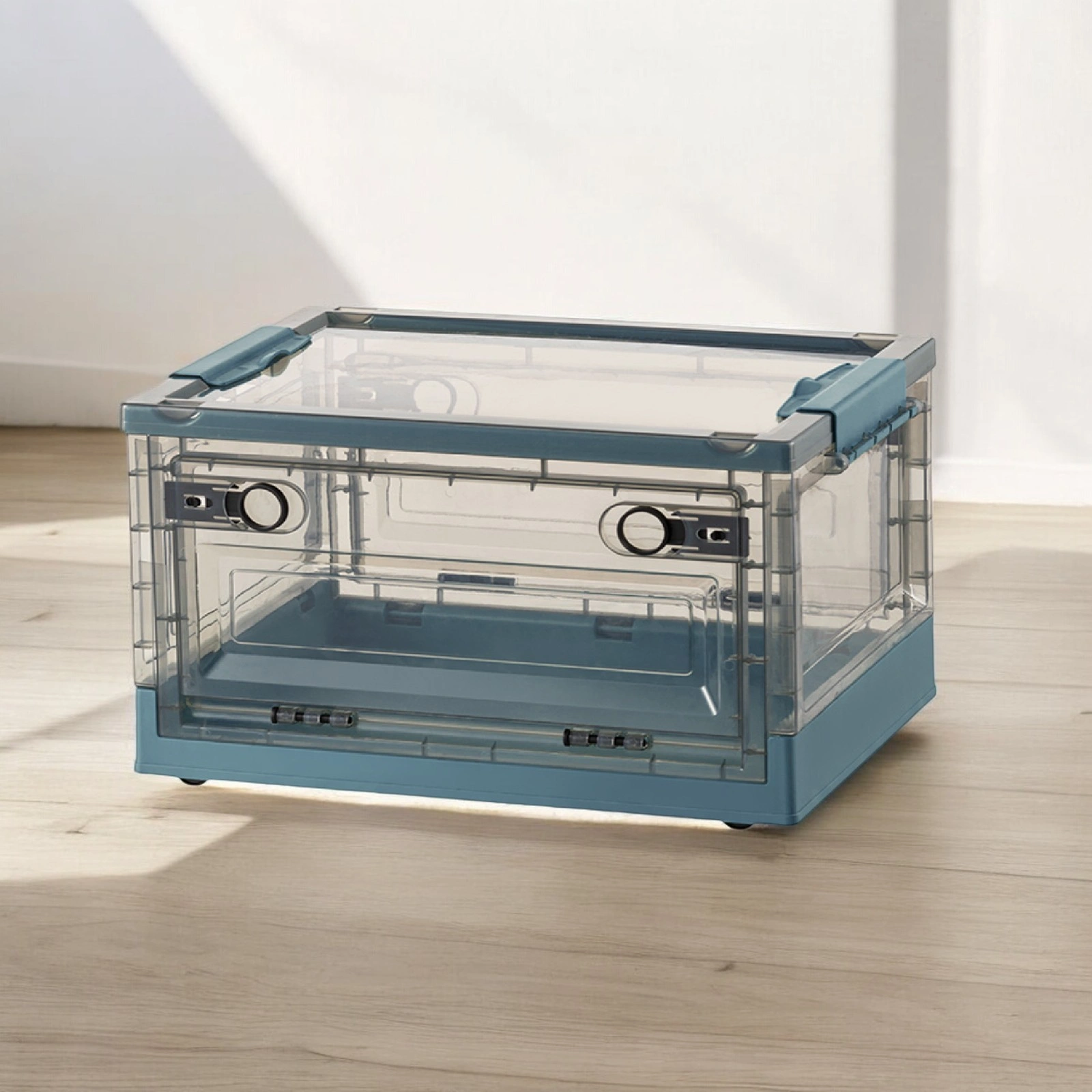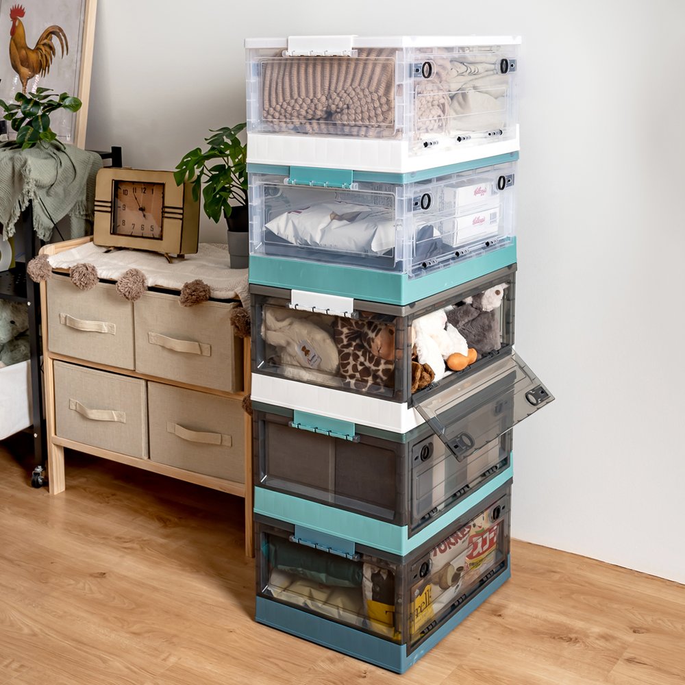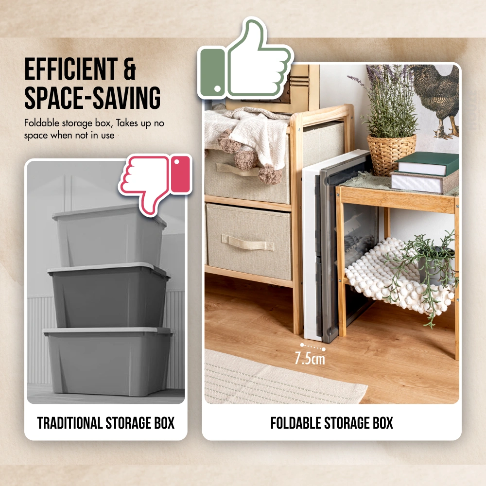 Introducing the game-changer in storage solutions: the HOUZE – ‘FLERO’ Collapsible 55L Storage Box with Wheels (Smoke Grey & Blue). Meticulously designed from top-grade Virgin PP material. ‘FLERO’ promises unmatched durability and style. With its visionary side-opening access and smooth-rolling wheels. this box is the future of accessible. visible. and mobile storage. Thanks to its crystal-clear design. a glance and your items are within reach. Redefine organisation and accessibility with ‘FLERO’.
