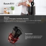Strainer-Free Chamber: Traditional juicers require a strainer which collects minerals over time. requiring extensive scrubbing. The H400 utilizes a revolutionary mechanism that minimizes pulp – even without a strainer. The strainer-like function is practically embedded within the chamber and the two-part auger meshes together to strain out pulp-free juice – which means bare minimum cleaning for high-quality juice!