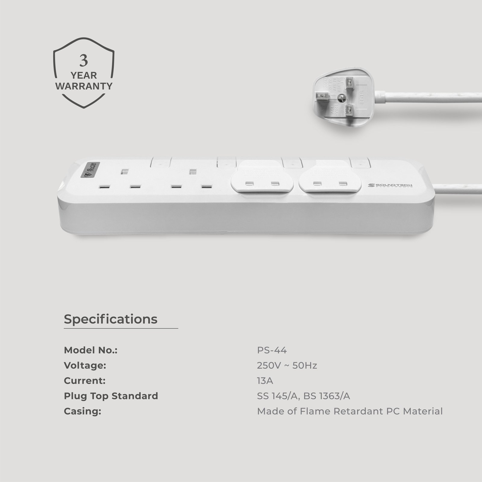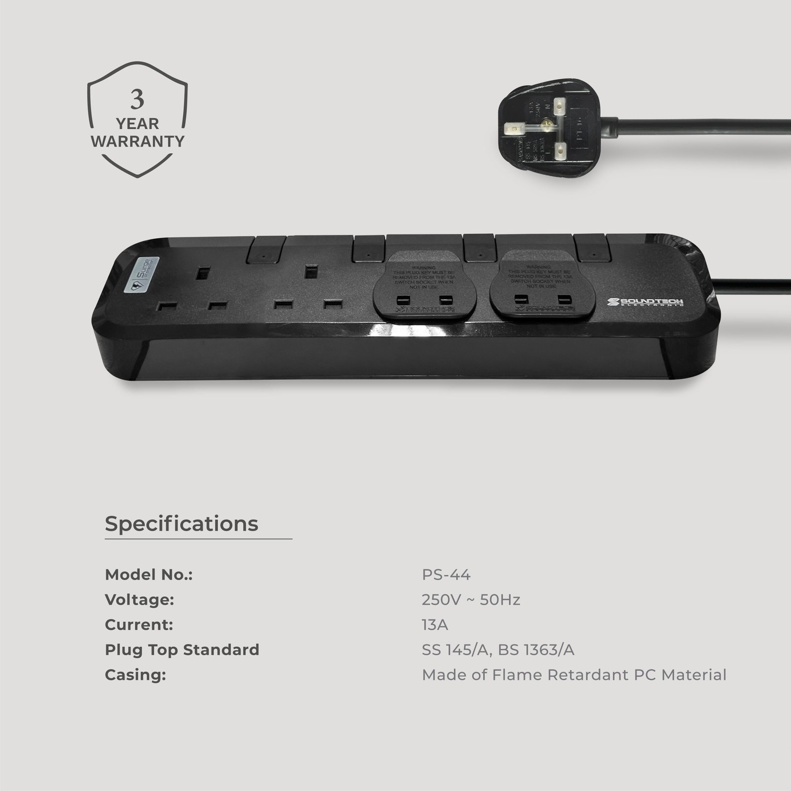 Total Max. Loading of 4 Sockets:Â 13A. 3250W